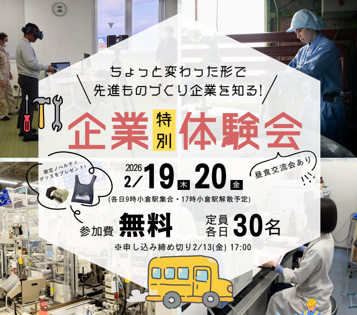 「ものづくりのまち北九州」には高い技術力を誇る企業が数多くあります。そんな企業を自分の目で見てみたいと思いませんか?「企業特別体験会」は、その願いに応えます。